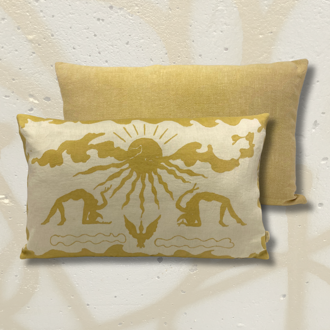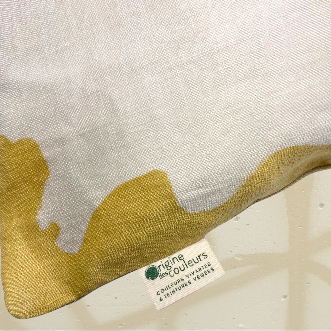 Coloré naturellement par la verge d'or (récolte locale) et l'alun, impression à main levée.
