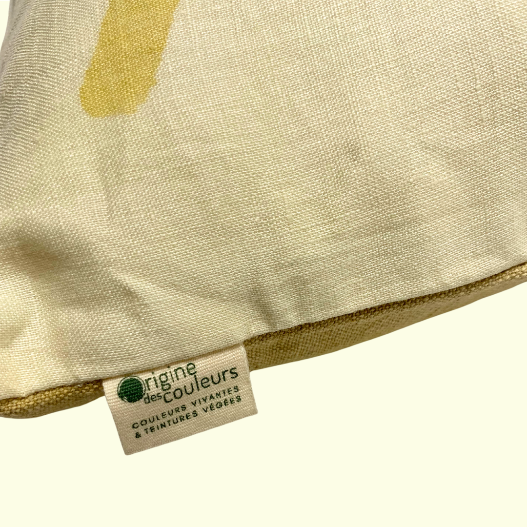 Coussin végé "jongleries géométriques "- jaune / brun