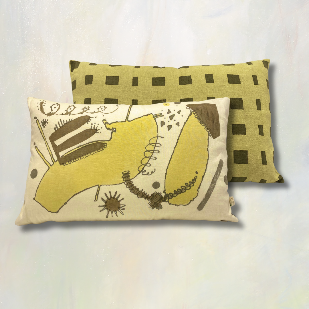 Coloré naturellement par la verge d'or (récolte locale) le fer et l'alun, impression à main levée et au bloc.